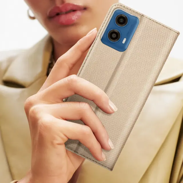 Torbica s preklopom za Motorola Moto G34 5G Zaklopka za podporo videoposnetkov, Zlata