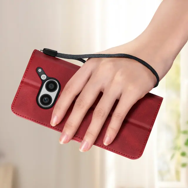 Torbica s preklopom za Nothing Phone 2a Denarnica s trakom za roko, Rdeča