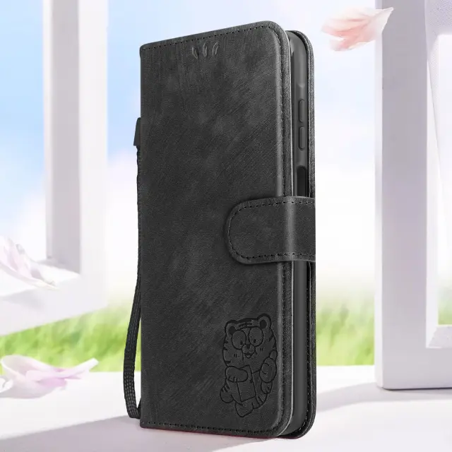 Torbica s preklopom za Samsung Galaxy A25 5G Tigrova denarnica Podpora za videoposnetke, Črna