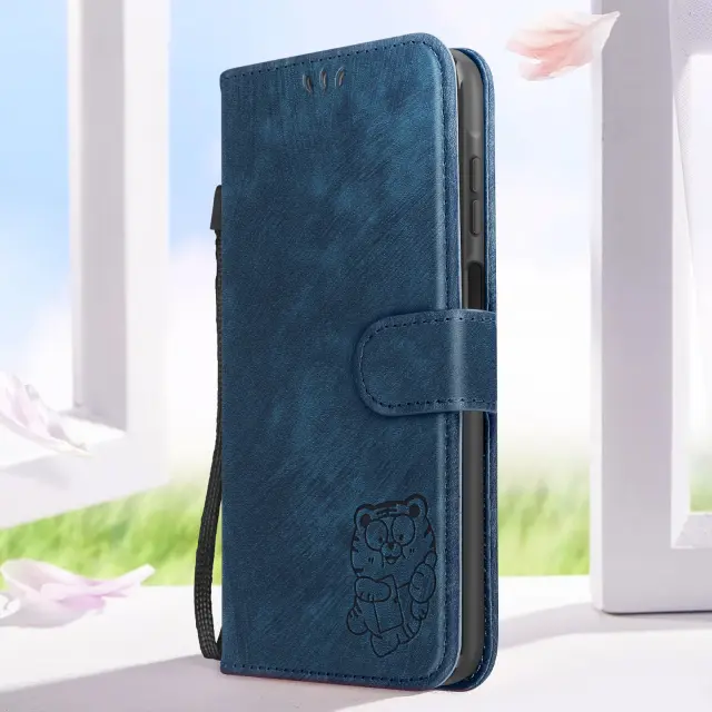 Torbica s preklopom za Samsung Galaxy A25 5G Tigrova denarnica Podpora za videoposnetke, Modra