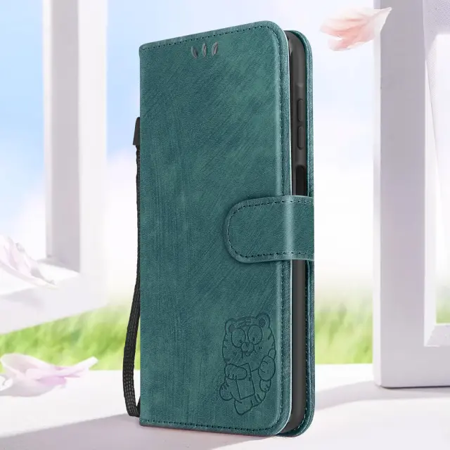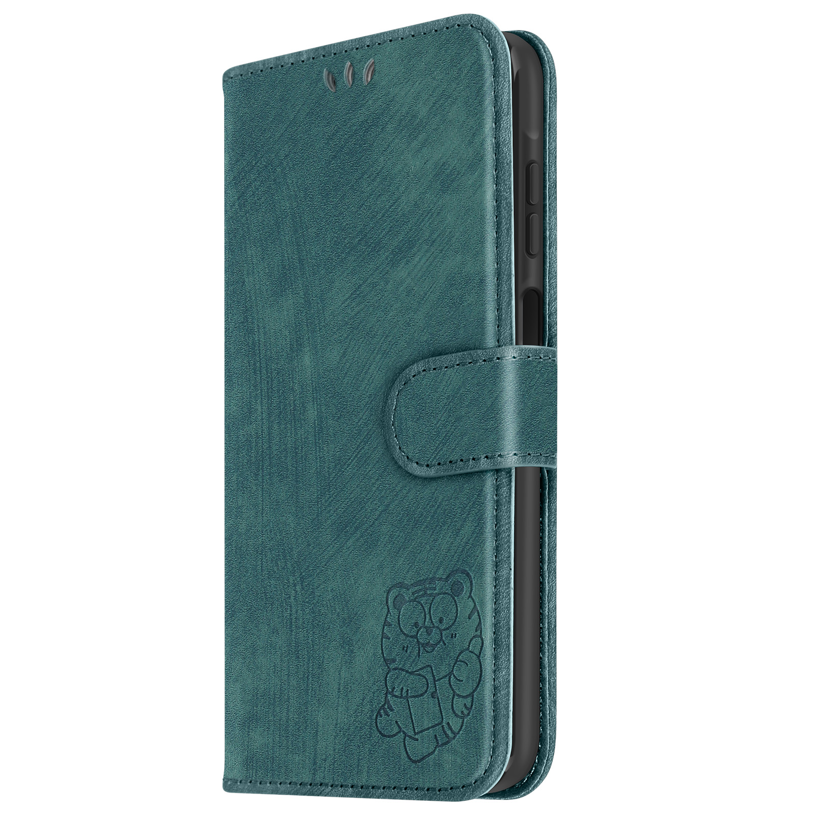 Torbica s preklopom za Samsung Galaxy A25 5G Tigrova denarnica Podpora za videoposnetke, Zelena