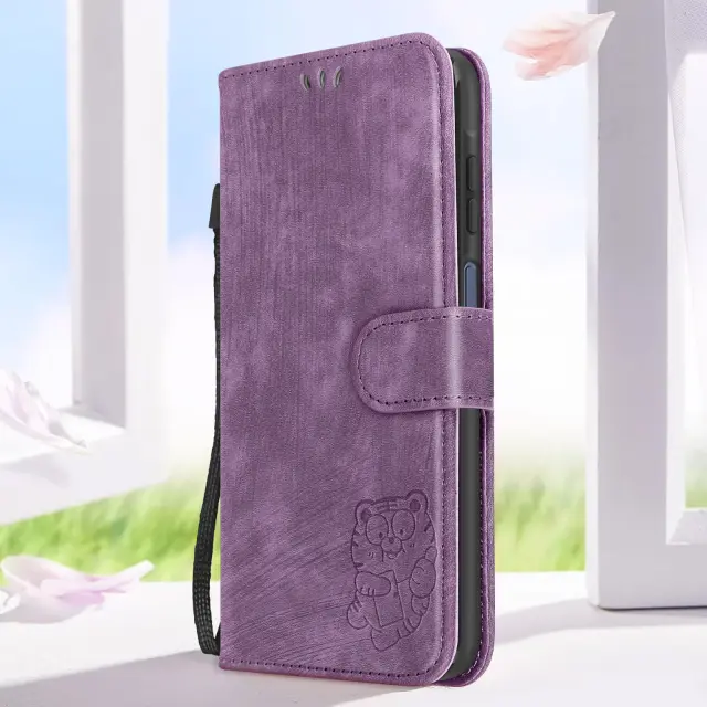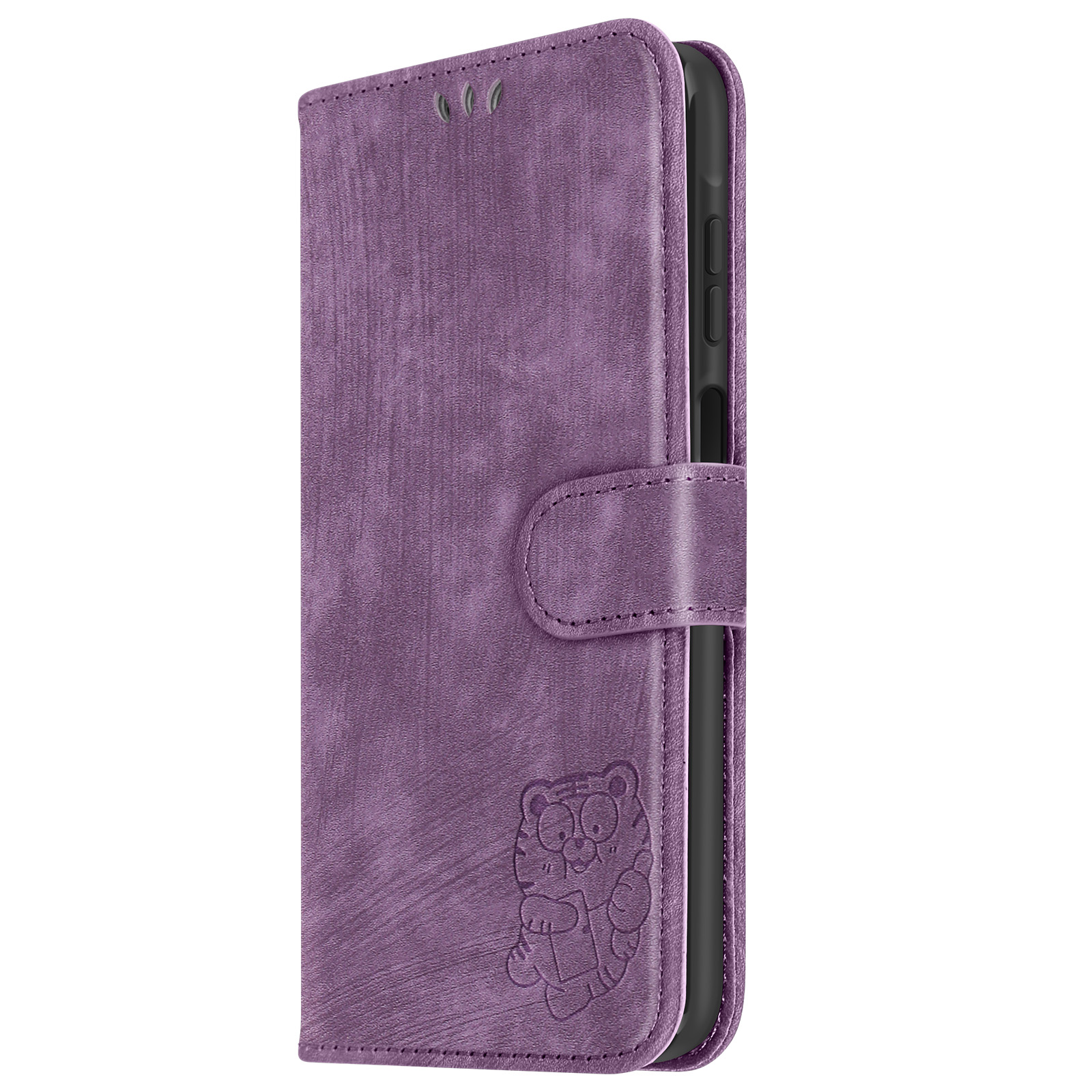 Torbica s preklopom za Samsung Galaxy A25 5G Tigrova denarnica Podpora za videoposnetke, Vijolična