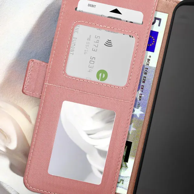 Torbica s preklopom za Samsung Galaxy A25 5G z zunanjim držalom za kartice, Rose clair