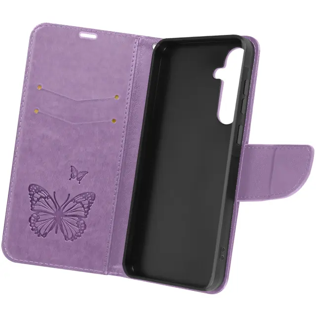 Torbica s preklopom za Samsung Galaxy A35 5G Denarnica za videoposnetke z ročnim trakom, Vijolična
