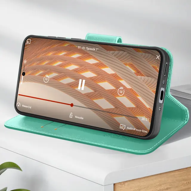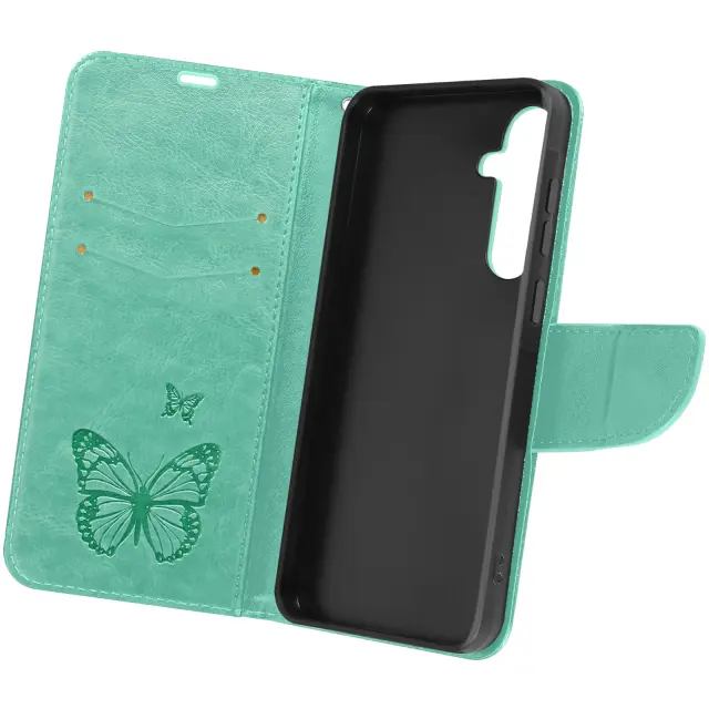Torbica s preklopom za Samsung Galaxy A35 5G Denarnica za videoposnetke z ročnim trakom, Turkizna