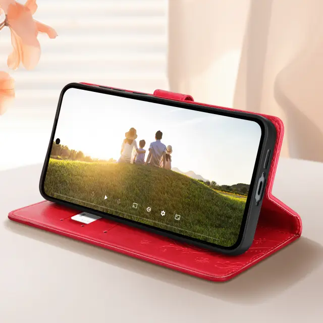Zaščitno ohišje, zasnovano posebej za vašo [ime naprave].. Vzorčast ovitek iz usnja doda edinstven in eleganten pridih telefonu. S tremi režami za kartice in stranskim žepom, v katerem boste imeli vse potrebno vedno pri roki.. Vgrajena podporna funkcija za udobno gledanje večpredstavnostnih vsebin.