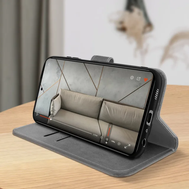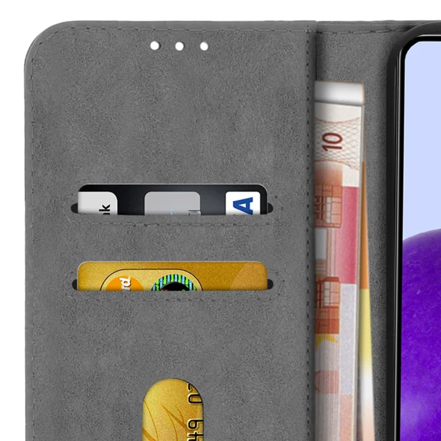 Vijolicno ohišje serije Chesterfield, posebej zasnovano za Samsung Galaxy A72. Zašcita celotnega pametnega telefona pred praskami in udarci. Prevlecen z elegantnim umetnim usnjem za uspešno preobrazbo pametnega telefona. Magnetni zavihek drži kovcek zaprt za vecjo varnost.