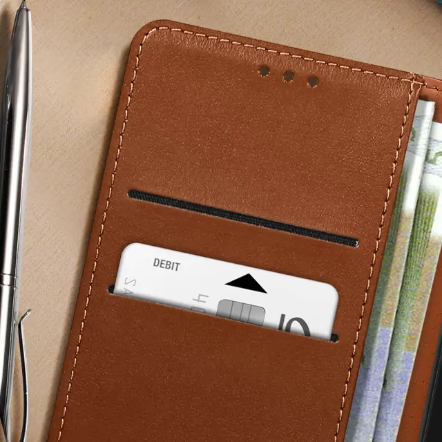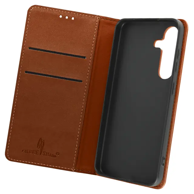 Torbica s preklopom za Samsung Galaxy S23 FE Denarnica z magnetno zaponko - Umetno usnje, Rjava