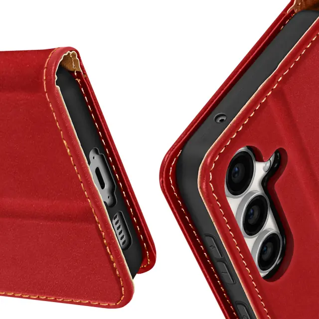 Torbica s preklopom za Samsung Galaxy S23 FE Denarnica z magnetno zaponko - Umetno usnje, Rdeča