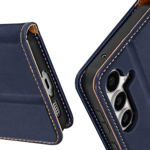 Torbica s preklopom za Samsung Galaxy S23 FE Magnetna zaponka Simulirano usnje denarnica, Modra noč