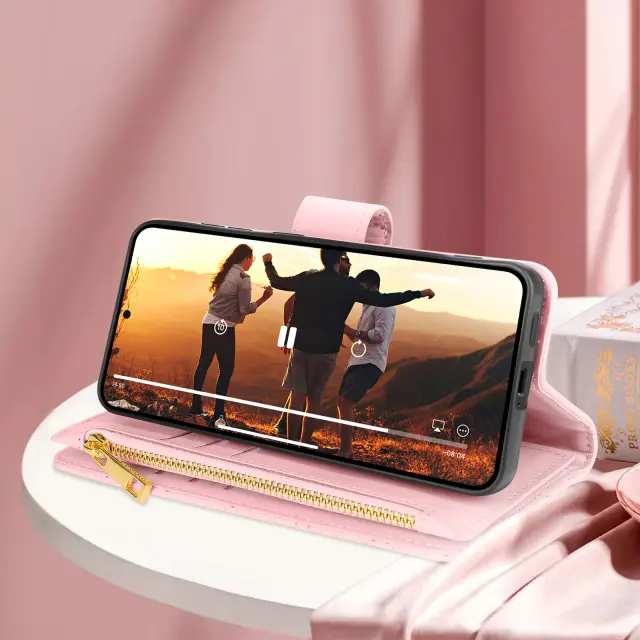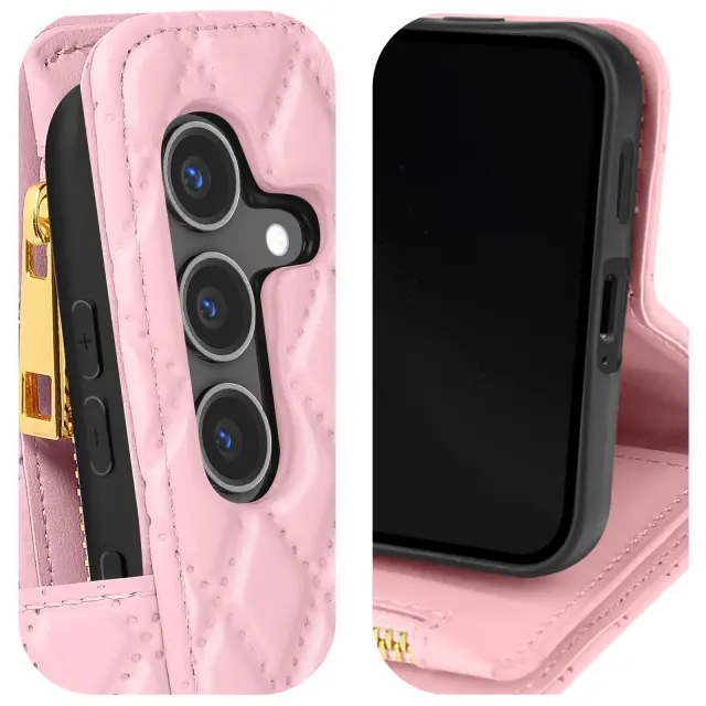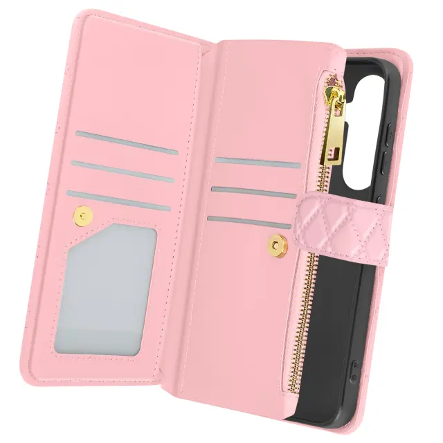 Torbica s preklopom za Samsung Galaxy S24 Denarnica, prešita oblika, Rose clair