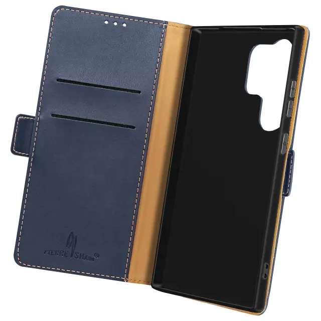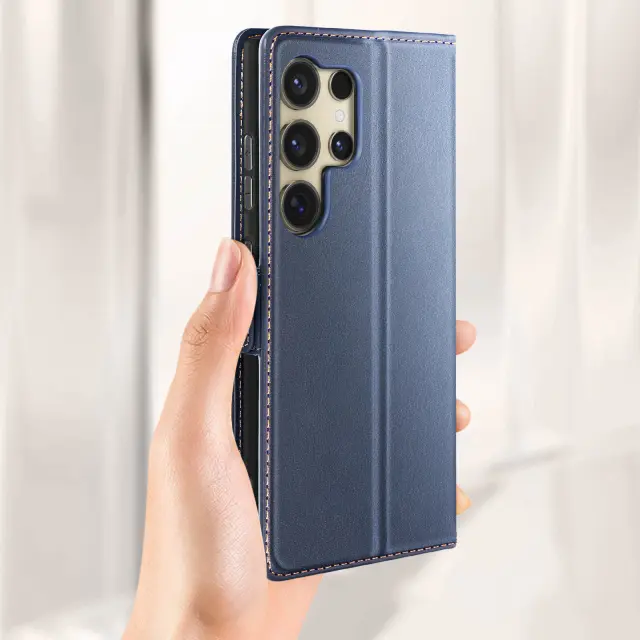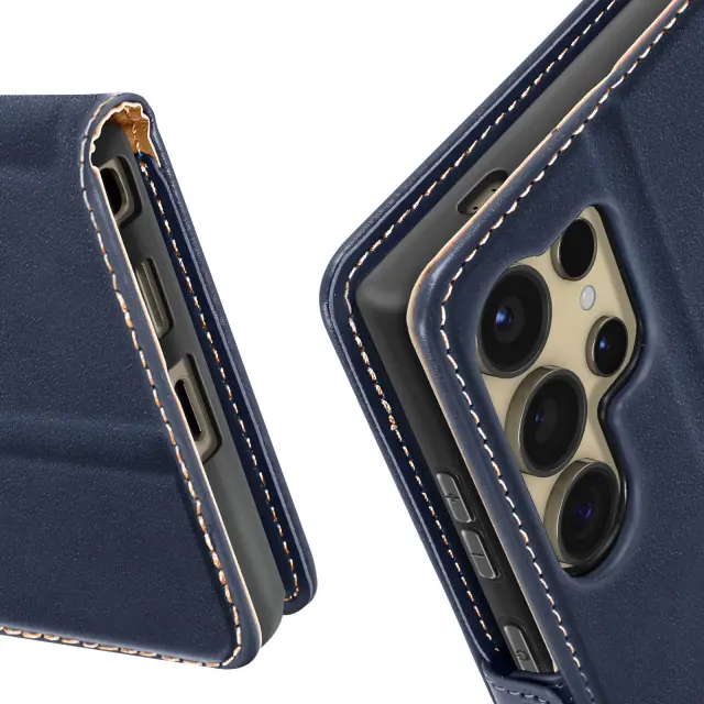 Torbica s preklopom za Samsung Galaxy S24 Ultra Magnetna zaponka Simulirano usnje denarnica, Modra noč