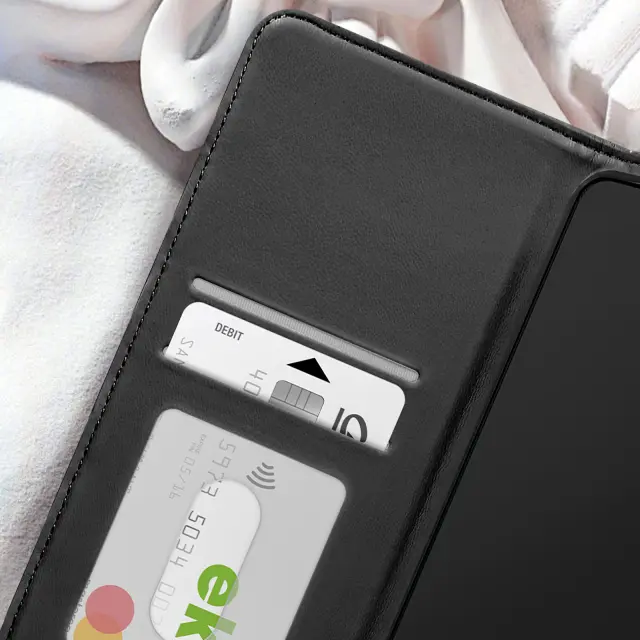 Torbica s preklopom za Xiaomi Poco F6 Pro Prešito usnje z učinkom, Črna
