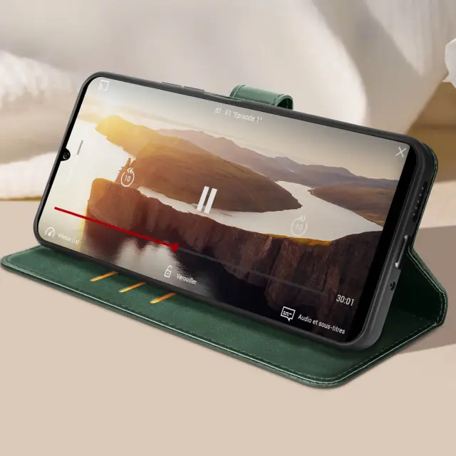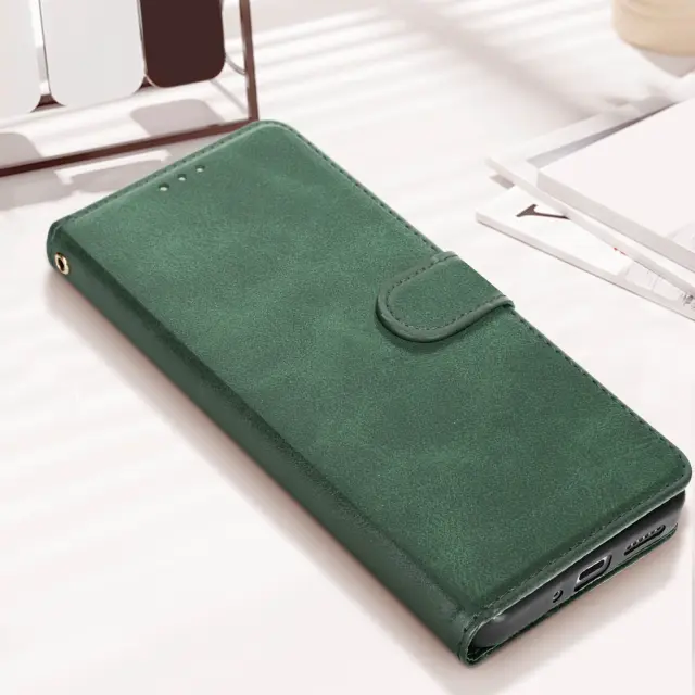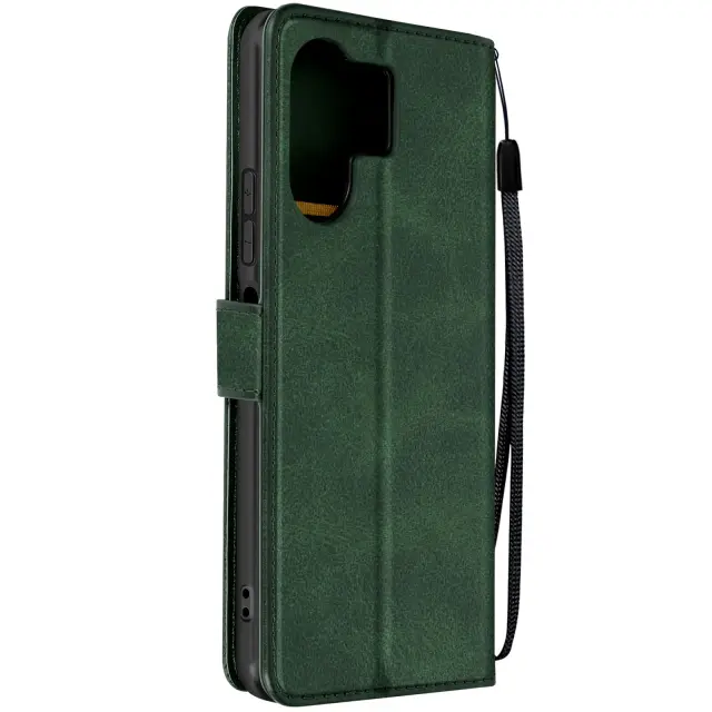 Torbica s preklopom za Xiaomi Poco M6 Denarnica s trakom za roko, Temno zelena