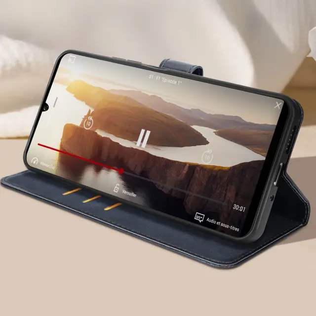 Torbica s preklopom za Xiaomi Poco M6 Denarnica s trakom za roko, Modra noč
