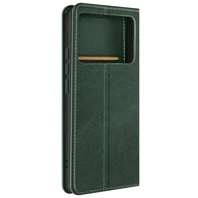 Torbica s preklopom za Xiaomi Poco X6 Pro 5G Denarnica z magnetno zaponko - Mehka imitacija usnja, Temno zelena