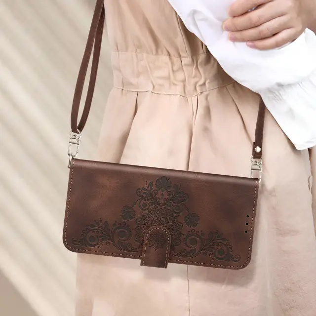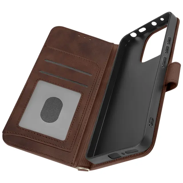 Torbica s preklopom za Xiaomi Redmi Note 13 4G Portfolio podpore za videoposnetke, Temno rjava