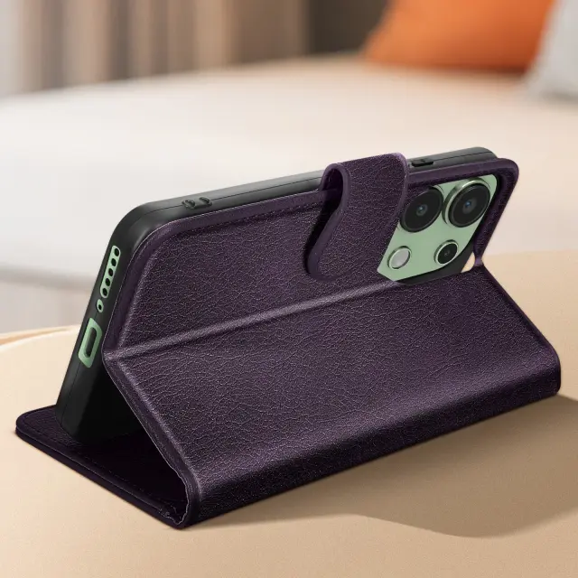 Torbica s preklopom za Xiaomi Redmi Note 13 4G Portfelj podpore za videoposnetke, Temno vijolična
