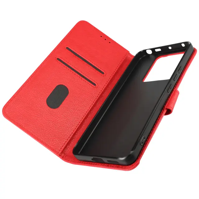 Torbica s preklopom za Xiaomi Redmi Note 13 Pro 5G Portfolio podpore za videoposnetke, Rdeča