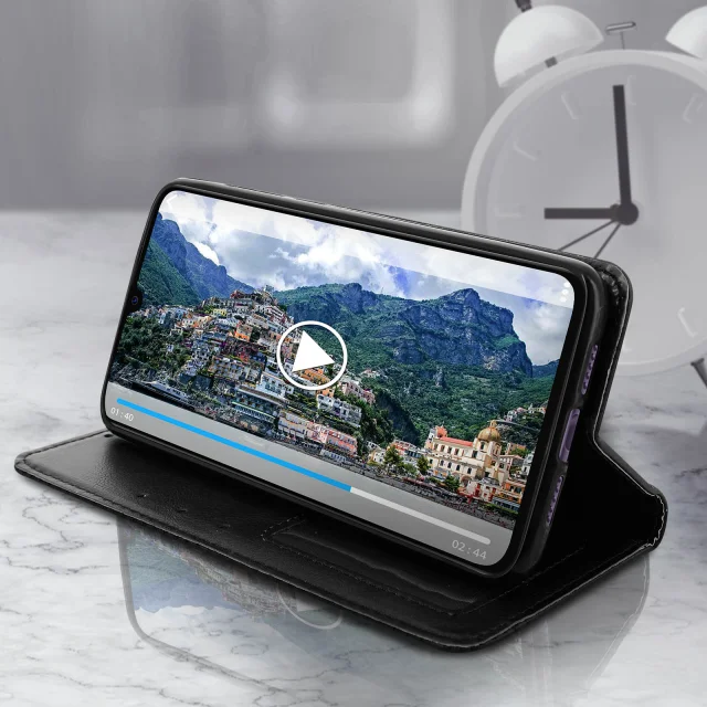 Torbica za denarnico s stojalom za video, videz postaranega usnja, kolekcija Vintage - crna str. Xiaomi Mi 9