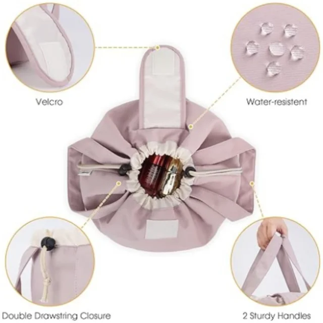 Torbica za ličenje z vrvico velike prostornine, prenosna potovalna kozmetična torbica Pink
