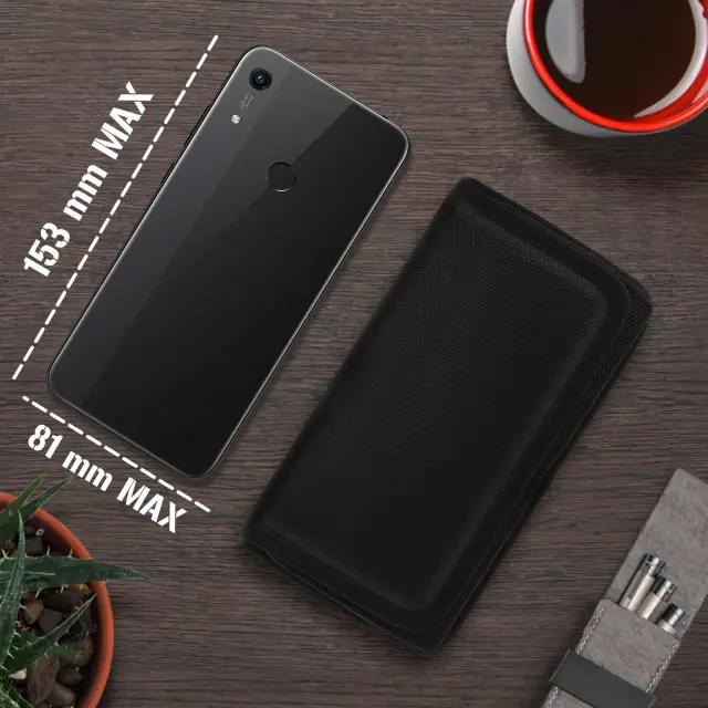 Etui za pas, zasnovan za pametne telefone do 153 mm dolžine in 81 mm širine, velikost L. Etui je pritrjen s sponko in zanko za varen oprijem, tudi ko je v gibanju. Velcro zapiranje predela omogoča enostavno namestitev vašega aparata. Notranjost mehka na dotik za zaščito zaslona pred poškodbami.