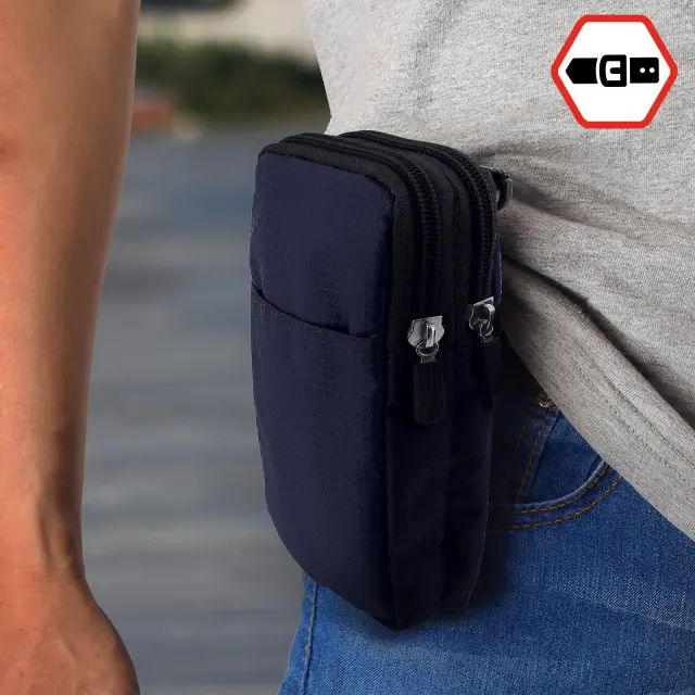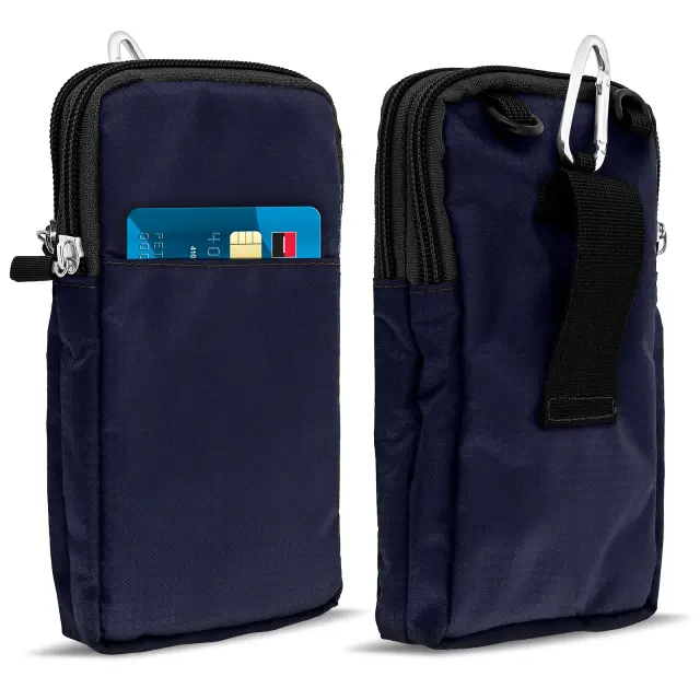 Ovitek za pas/žep z zadrgo za pametni telefon do (V)180 x (Š)110 mm. Zanka za pas na zadnji strani, tako da imate svoje osebne stvari pri roki. Dva žepa z zadrgo za shranjevanje mobilnih naprav ali kreditnih kartic. Mehki notranji predelki, mehka podloga, ki ščiti zaslon in zadnjo stran telefona.