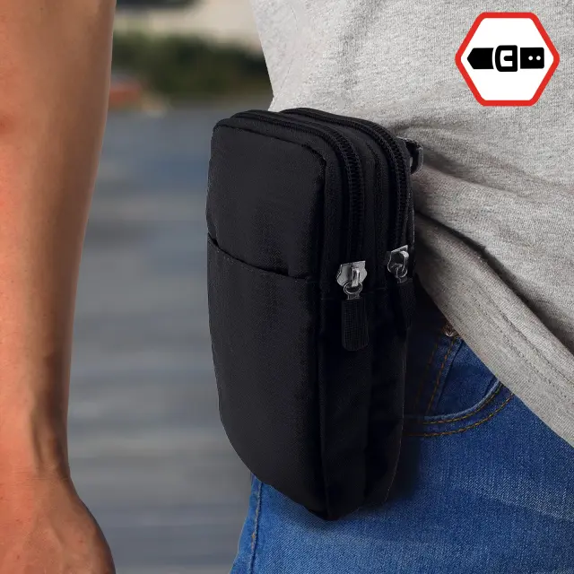 Preprosto prenašajte svoj pametni telefon in osebne predmete zahvaljujoc tej torbici za pas z dvojnimi predali. Prakticen, lahko ga nosite v pasu ali na rami, tako da ga imate vedno pri roki.