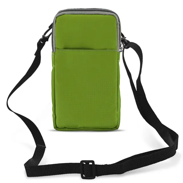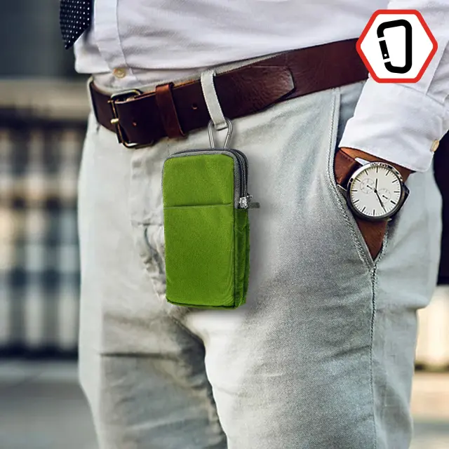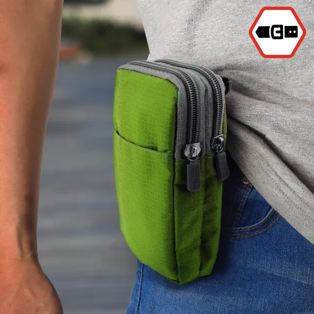 Ovitek za pas/žep z zadrgo za pametni telefon do (V)180 x (Š)110 mm. Zanka za pas na zadnji strani, tako da imate svoje osebne stvari pri roki. Dva žepa z zadrgo za shranjevanje mobilnih naprav ali kreditnih kartic. Mehki notranji predelki, mehka podloga, ki ščiti zaslon in zadnjo stran telefona.