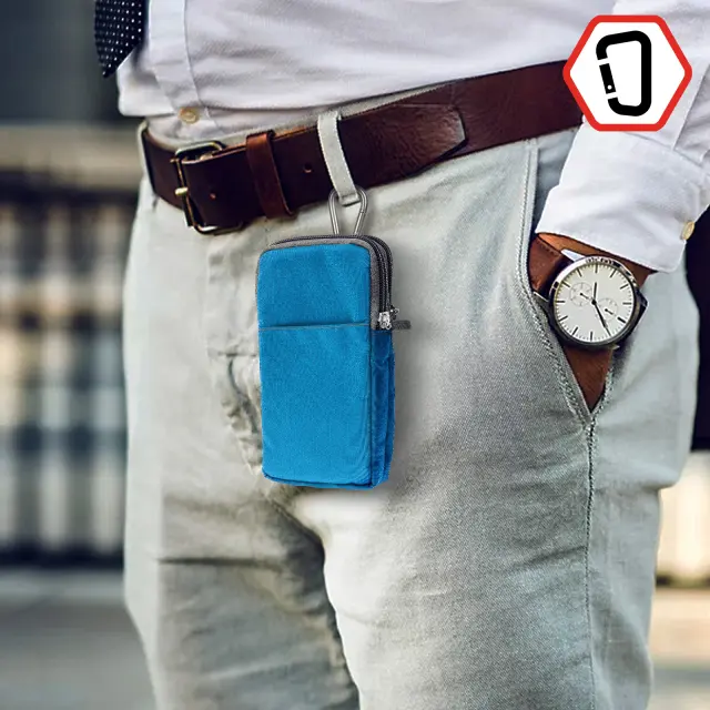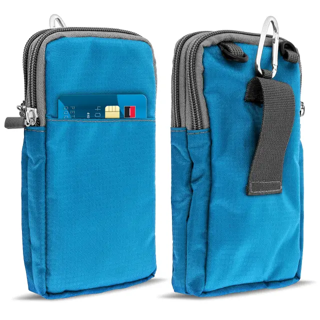 Ovitek za pas/žep z zadrgo za pametni telefon do (V)180 x (Š)110 mm. Zanka za pas na zadnji strani, tako da imate svoje osebne stvari pri roki. Dva žepa z zadrgo za shranjevanje mobilnih naprav ali kreditnih kartic. Mehki notranji predelki, mehka podloga, ki ščiti zaslon in zadnjo stran telefona.