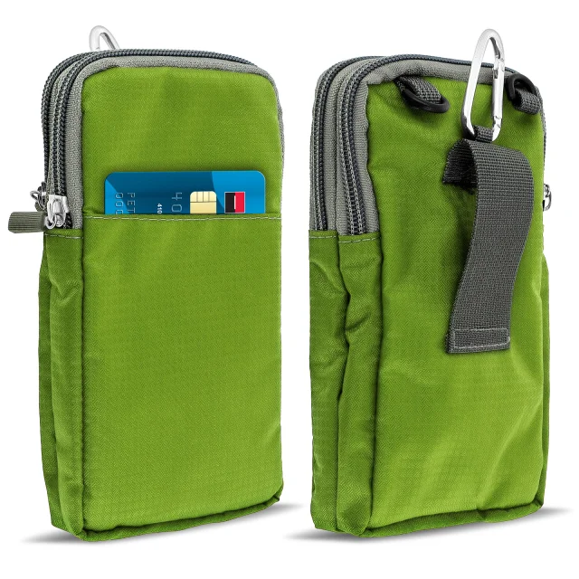 Torbica za pas, žep z dvojno zadrgo in karabinom za vrvico - zelena