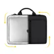 Varno in zaščitno: torbica je zasnovana s podlogo in funkcijami za blaženje udarcev, ki zagotavljajo optimalno zaščito vašega prenosnika. Vodoodporna zunanjost prav tako varuje vaše stvari pred razlitjem in brizganjem.