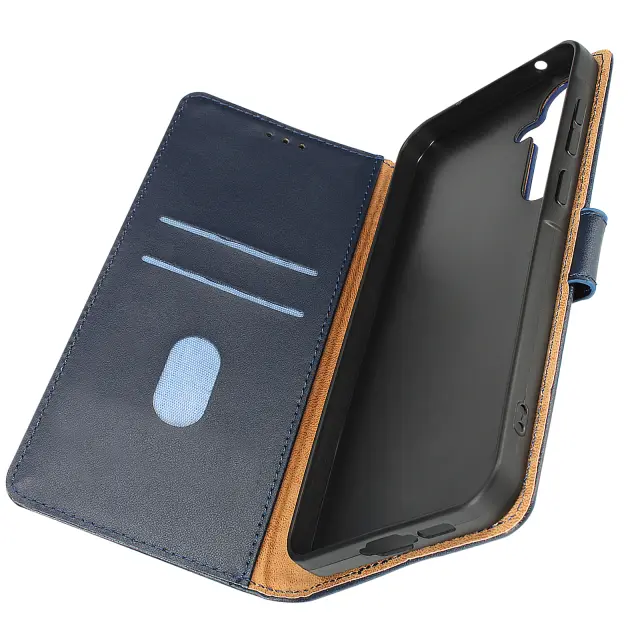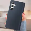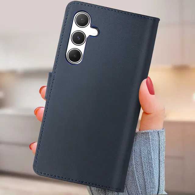Torbica za Samsung Galaxy A55 Pristno usnje Zaponka denarnice, Modra noč