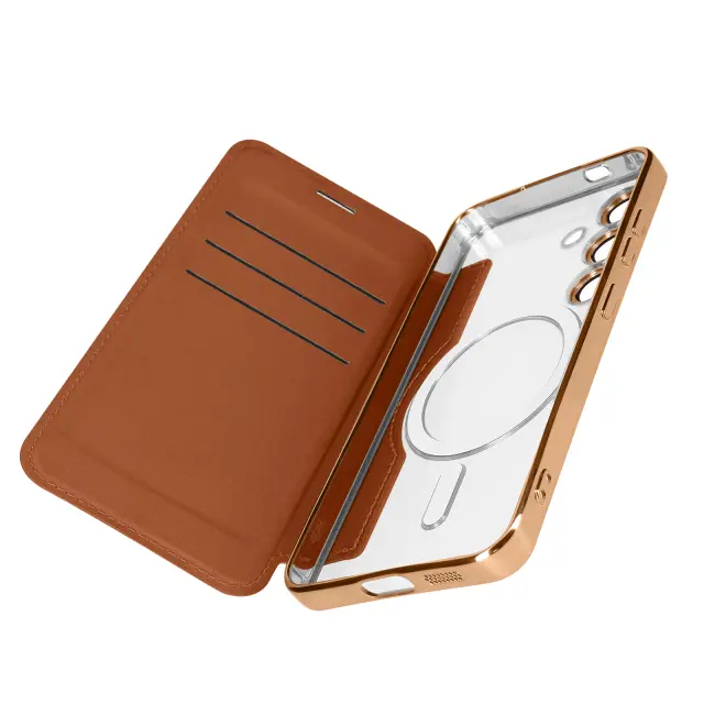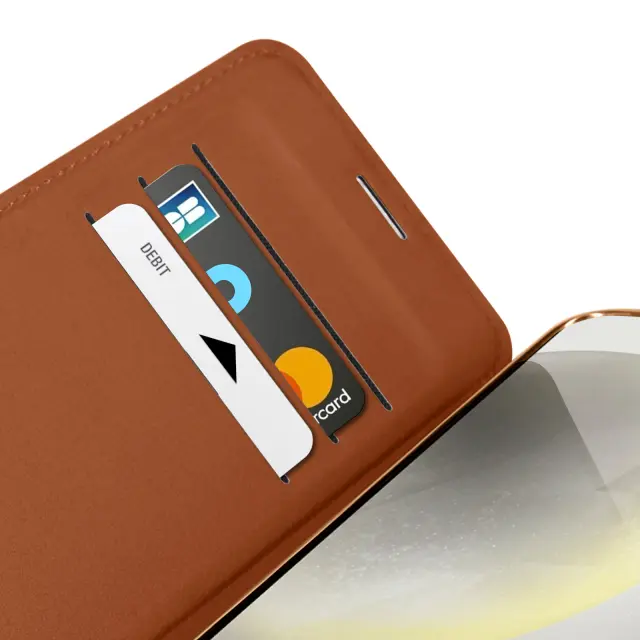 Torbica za Samsung Galaxy S24 Denarnica Anti RFID Zaščita kamere, Svetlo rjava