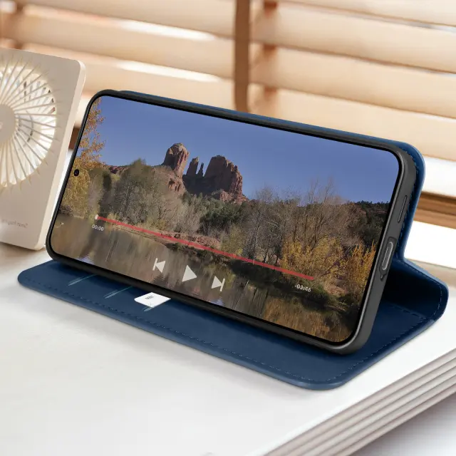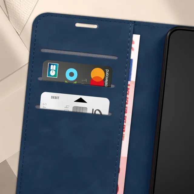 Torbica za Samsung Galaxy S24 usnje z mehkim dotikom, Modra noč