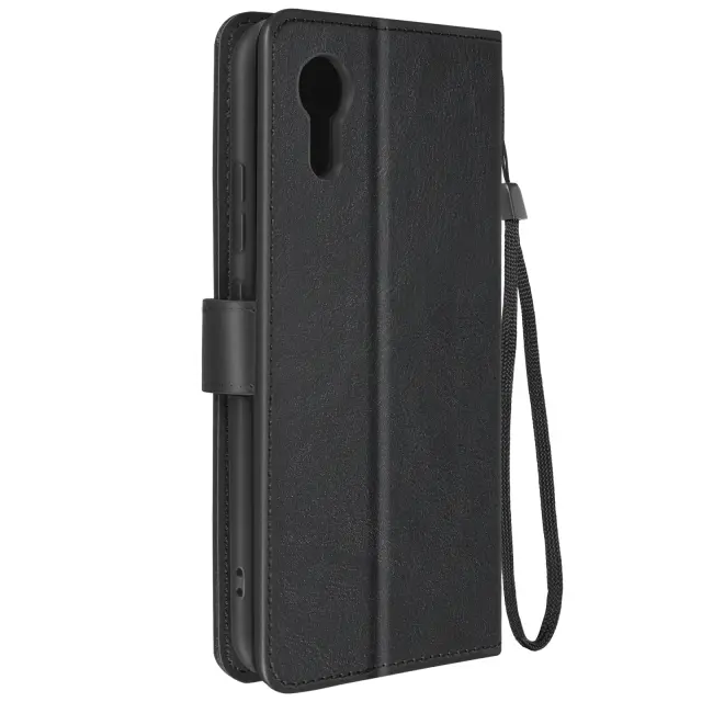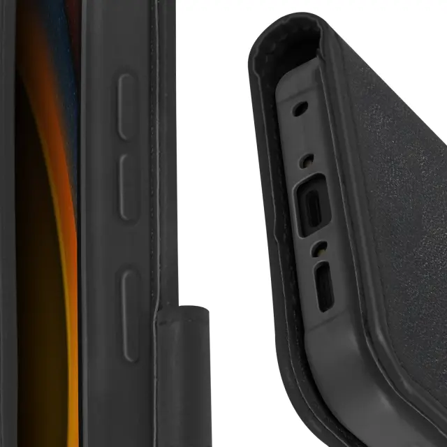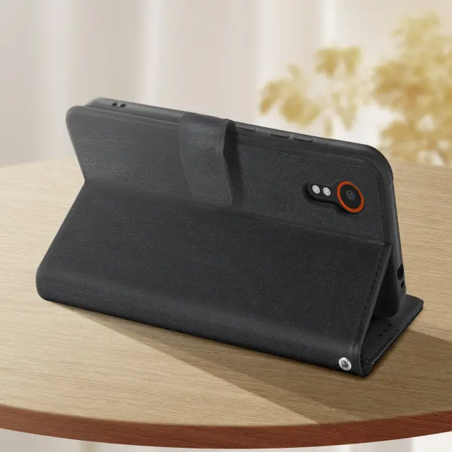 Zaščitno ohišje iz temno črnega eko usnja, posebej zasnovano za zaščito vaše [ime naprave].. Vgrajen prostor za shranjevanje v podlogi zavihka za kartice in zapiske. Zložljiv pokrov za vodoravno podporo telefona, da lahko uživate v vsebini. Odporna prevleka, ki pametni telefon učinkovito ščiti pred udarci in praskami.