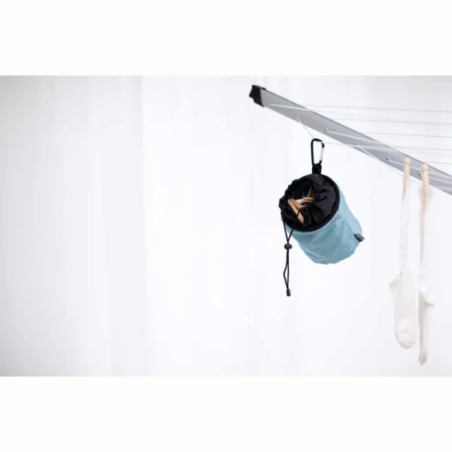 Brabantia torbica za ščipalke bo pokrbela, da boste imeli ščipalke vedno pri roki. Poleg tega ne boste več v skrbeh, da bi se vam ščipalke prevrnile, saj je trobica opremljena s klinčkom, tako da jo lahko obesite na stojalo. Za zapiranje pa porkbi preprost sistem z vrvico.