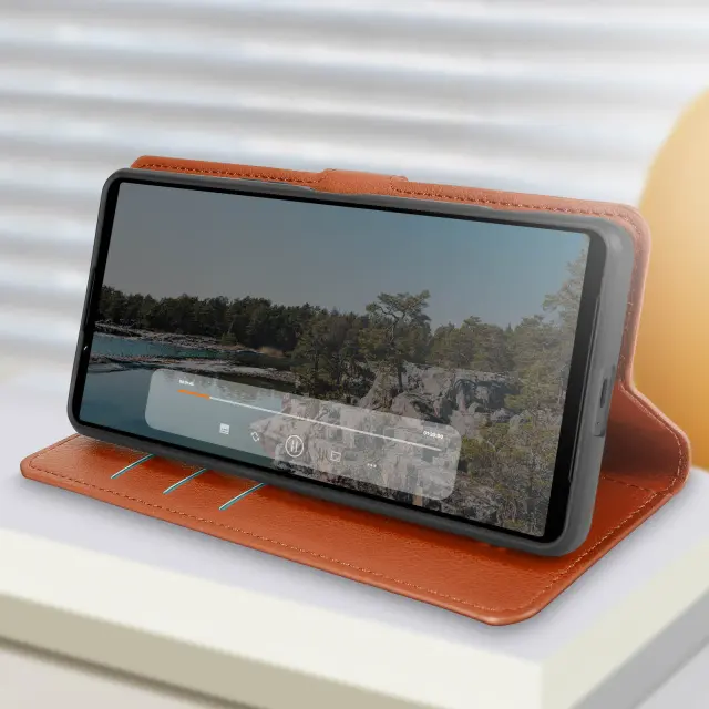 Torbica za Sony Xperia 1 VI Denarnica zaklopka Funkcija stojalo, Svetlo rjava