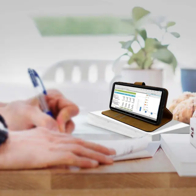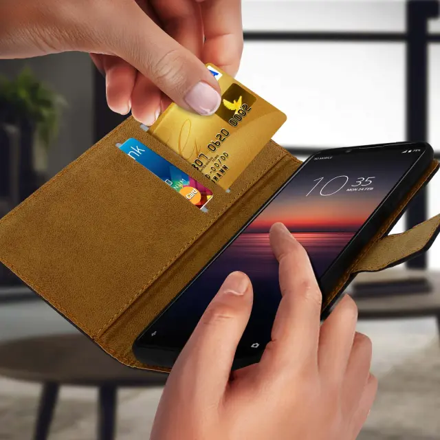 Zaščitna torbica za Sony Xperia 10 II. Učinkovito ščiti vašo napravo pred vsakodnevnimi udarci in praskami. Trezen in eleganten dizajn iz pravega usnja s šivanimi zaključki. Prilagojen pokrov iz silikonskega gela za enostavno namestitev.