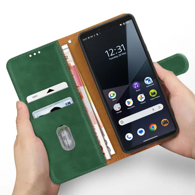 Torbica za Sony Xperia 10 VI Držala za kartice in videoposnetke, Temno zelena