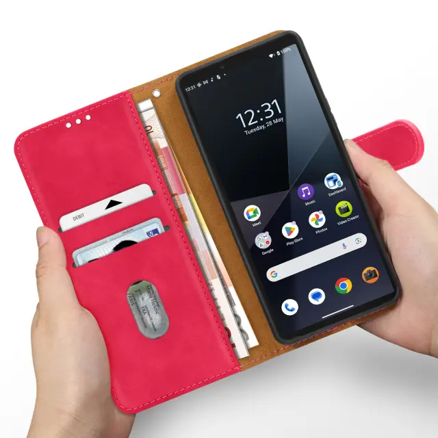 Torbica za Sony Xperia 10 VI Držala za kartice in videoposnetke, Fuksija