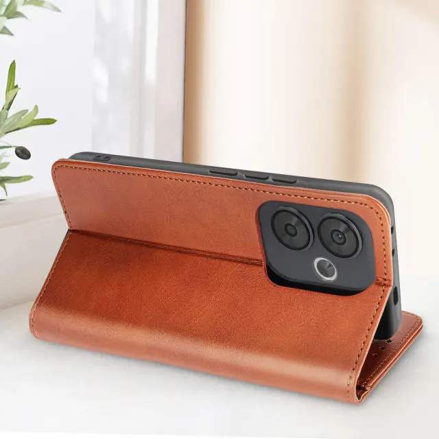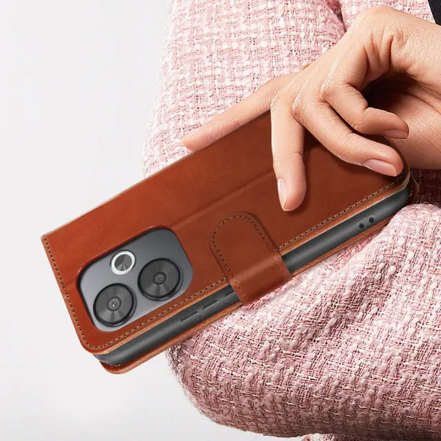 Torbica za Xiaomi Poco F6 Vintage denarnica Clap, Svetlo rjava