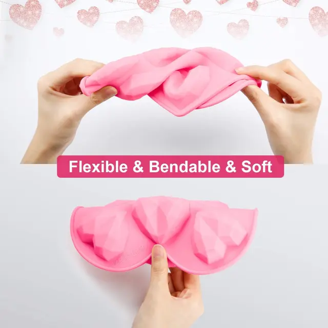 Vzdržljivi: ti kalupi so izdelani iz visokokakovostnega silikona, zato so prilagodljivi in upogljivi za dolgotrajno uporabo; so odporni na mraz in vročino ter prenesejo temperature od minus 40 stopinj do 260 stopinj Celzija, tako da jih lahko varno uporabljate v mikrovalovnih pečicah in hladilnikih. Dober kuhinjski pomočnik: Ti modelčki za mousse torte so popolni za torte zlomljenega srca, želeje, mafine, fondant, sladkorna pasta, stopljena čokolada, okras za sirne torte in druge sladice; lahko jih uporabite tudi za zabavna ročna dela DIY. Združljivi so z večino materialov za ulivanje, kot so vosek, milo, smola, glina za kalupe itd. Enostavno odstranjevanje iz kalupa in čiščenje: notranja površina kalupa v obliki srca je gladka in ni palica, zaradi česar je zelo enostavno odstraniti iz kalupa, ne da bi pri tem ostali ostanki; hkrati pa lahko diamantni kalup v obliki srca očistite v pomivalnem stroju, s čimer prihranite čas, trud in energijo. Uporabne priložnosti: izjemen dizajn 3D kalupov v obliki srca je živ in privlačen; uporabite jih za pripravo okusne hrane za družinska srečanja in festivale, kot so rojstnodnevne zabave, noč čarovnic, božič, valentinovo, materinski dan, očetovski dan itd.; Uporabite lahko tudi Čas je, da z družino ali prijatelji izdelujete čudovite ročne izdelke in uživate v zabavnih ročnih izdelkih DIY