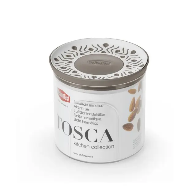 Tosca doza za shranjevanje živil, ki v višino meri 11 cm, je narejena iz čvrste, izredno odporne plastike.