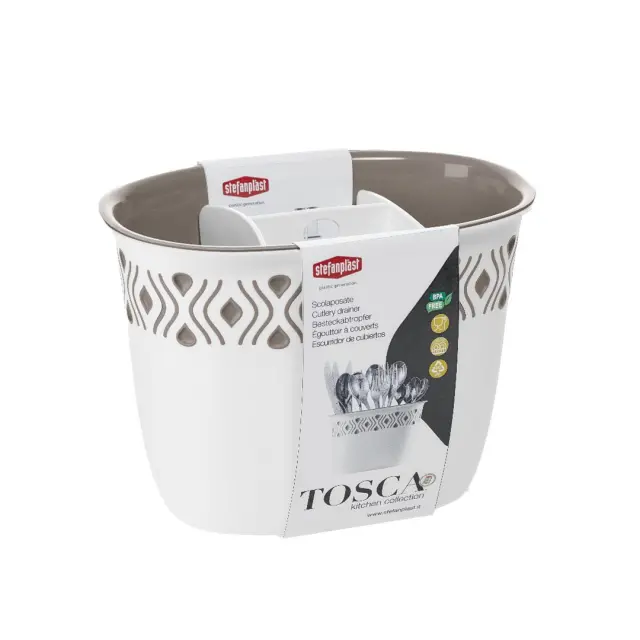 Tosca podstavek oz. odcejevalnik pribora s čudovitim vzorcem je narejen iz čvrste, izredno odporne plastike.