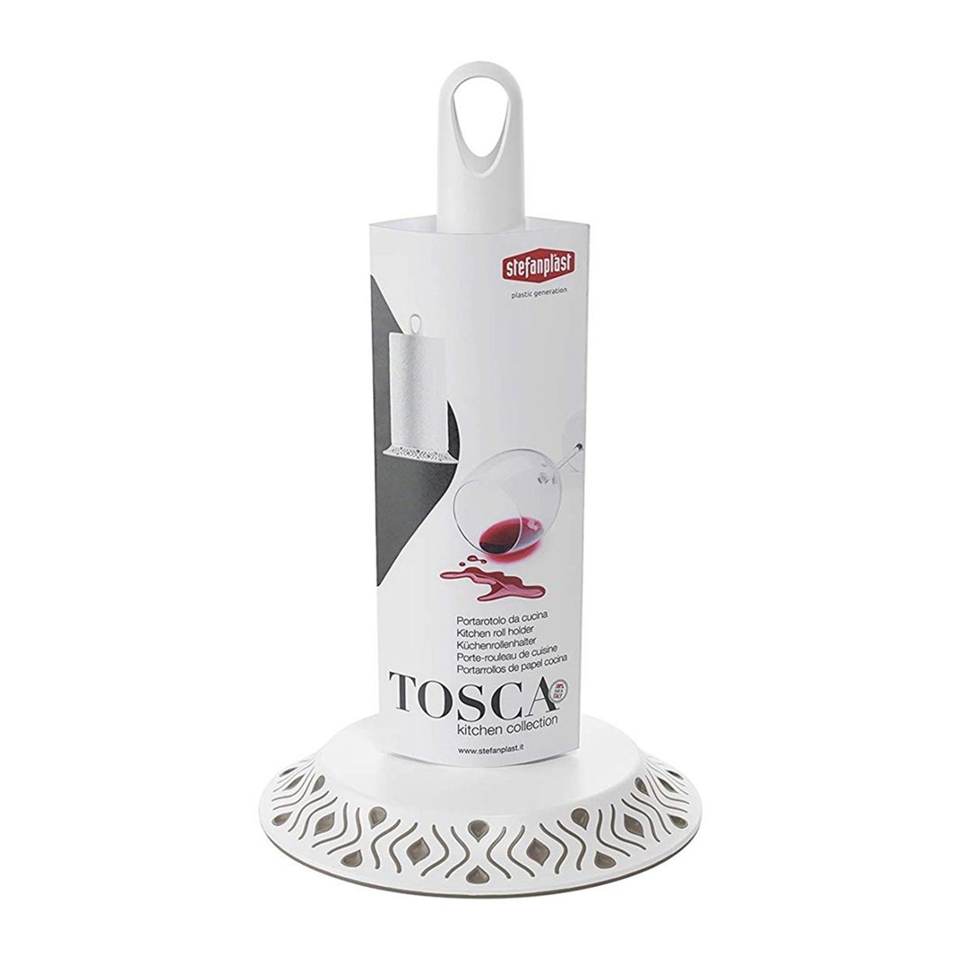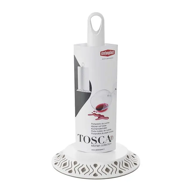 Podstavek za kuhinjske papirnate brisače Tosca, ki v višino meri 30 cm, je narejen iz čvrste, odporne plastike in je nepogrešljiv na vašem kuhinjskem pultu.