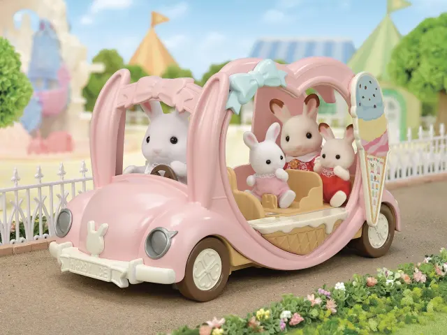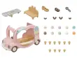 Set sladoledne avtobusne vožnje vsebuje več kot 30 pisanih in videti okusnih sladoledov ter dodatkov. Postrezite kepice sladoleda v kornetih in dodajte čokoladne prelive, ki imajo obliko ljubkih ušes živali! Prelivi so različnih oblik, tako da lahko ustvarite sladolede v temah zajca, mačke ali panda!