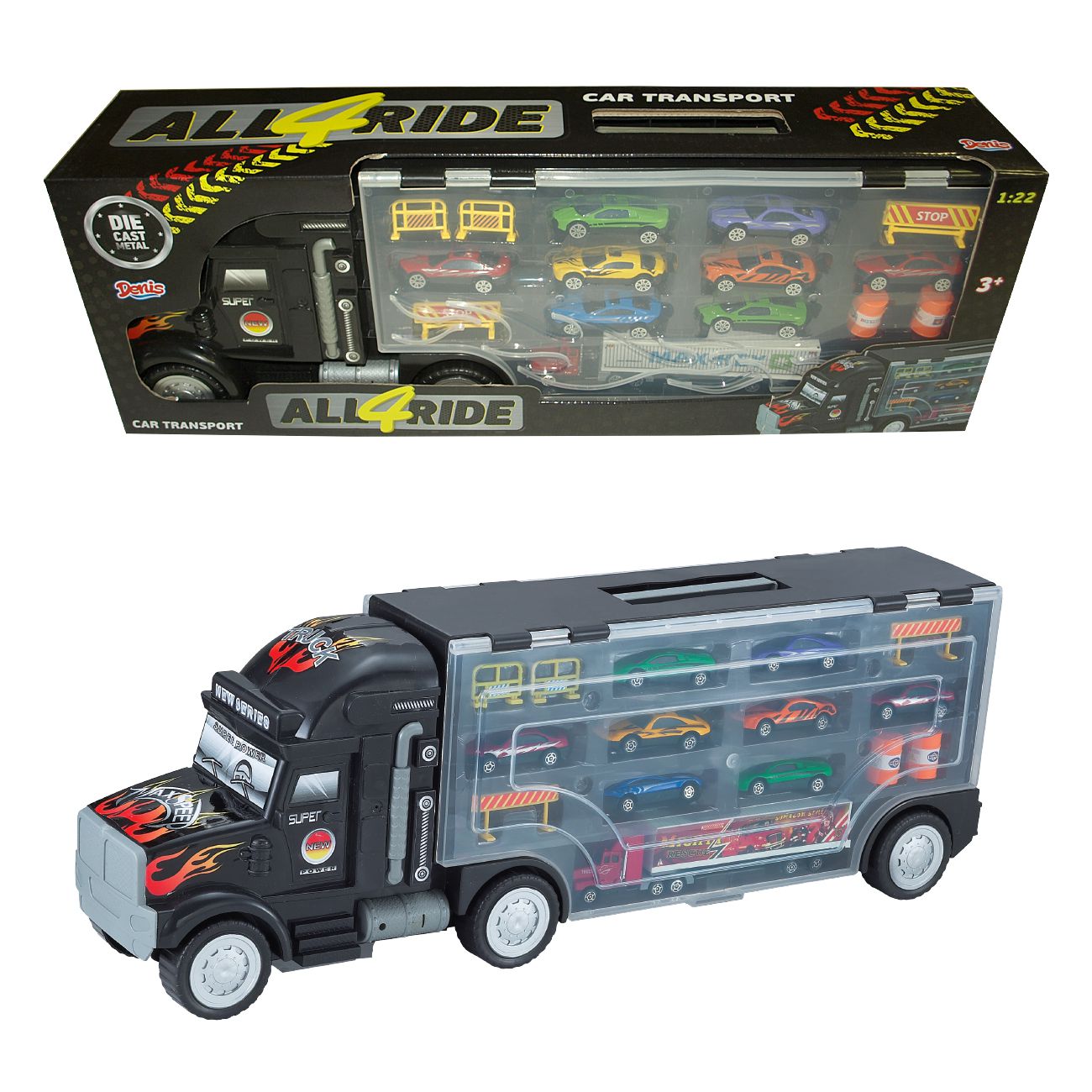 Če je tudi vaš malček ljubitelj vsega, kar se premika na štirih kolesih, potem je ta avto transporter prava igrača zanj. Ta komplet ima ogromno igralnih možnosti, od majhnih dirkalnih avtomobilov do velikih in majhnih tovornjakov. Obstajajo tudi znaki za ureditev prometa. Ta zabavna igrača za domiselno igro bo vašemu malčku zagotovila nešteto ur dobre zabave.
