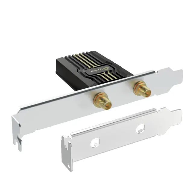 Archer TBE552E je zmogljiva Wi-Fi 7 PCIe kartica, zasnovana za najvišje hitrosti in stabilnost na namiznih računalnikih. Tri-pasovna zasnova dosega do 5760 Mbps v 6 GHz pasu, 2880 Mbps v 5 GHz in 688 Mbps v 2.4 GHz. Podpora za Multi-Link Operation (MLO) omogoča združevanje frekvenčnih pasov za skupne hitrosti do 6452 Mbps, kar prinaša nižjo latenco, večjo prepustnost in zanesljivejšo povezavo. Dve večsmerni anteni izboljšata sprejem signala, OFDMA in MU-MIMO pa poskrbita za učinkovito delovanje v obremenjenih omrežjih. Vgrajen Bluetooth 5.4 nudi boljšo zanesljivost in varnost, WPA3 pa ščiti omrežje z naprednimi varnostnimi mehanizmi. Kartica je združljiva izključno z Windows 11 (64-bit).