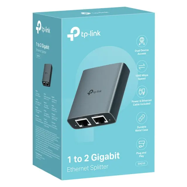 Z razdelilcem EH210 preprosto razširite svojo žično omrežno povezavo in hkrati povežite dve napravi z gigabitno hitrostjo. Kompaktna zasnova, kakovostni materiali in enostavna uporaba ga naredijo idealnega za dom, pisarno ali igralne postavitve.